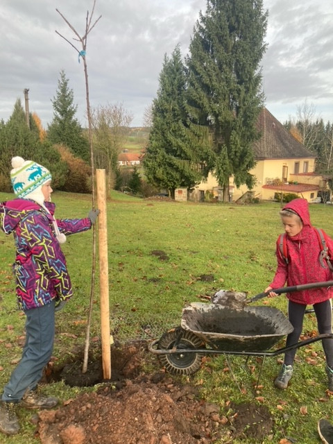 Zahájili jsme výsadbu aleje a sadu v Písečné. Dnešní výsadby se zúčastnily děti z místní Základní školy. 15. listopadu pokračujeme výsadbou sadu na dolním konci obce a všechny srdečně zveme ke spolupráci při sázení. Začínáme v 9:00 hod.