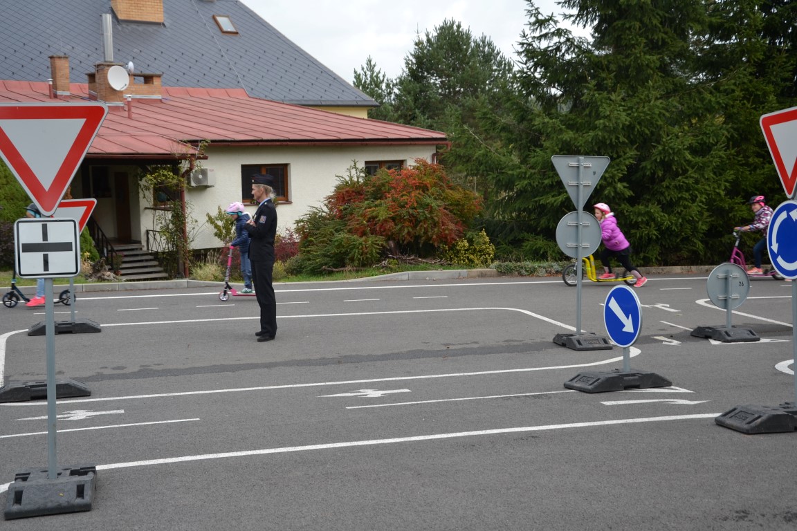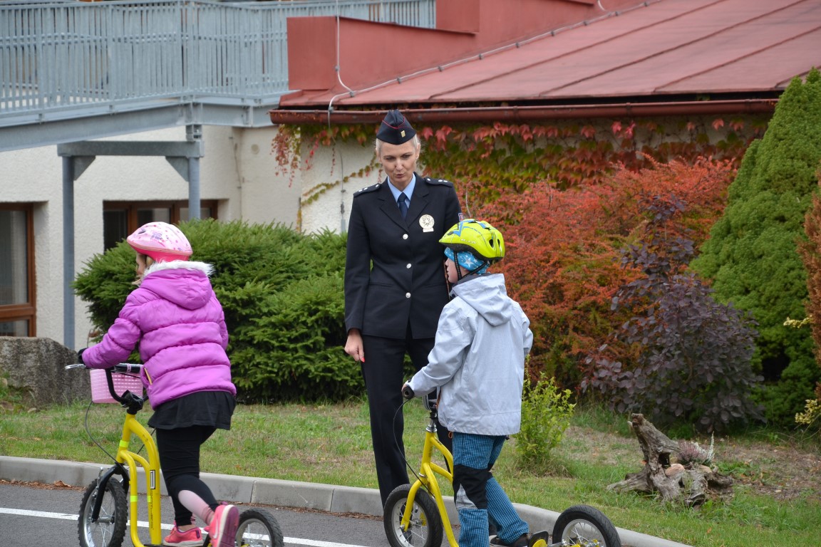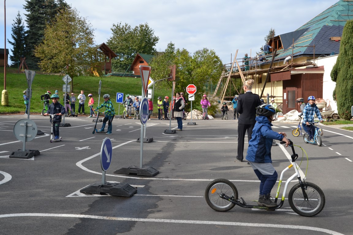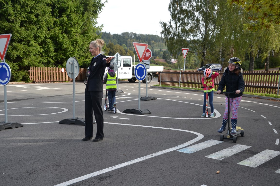 Školáky navštívila tisková mluvčí Policie ČR. Nejprve si připomněli, jak se bezpečně chovat na silnicích, na závěr ukázali na dopravním hřišti u školy, jak zvládají bezpečnou jízdu v praxi.