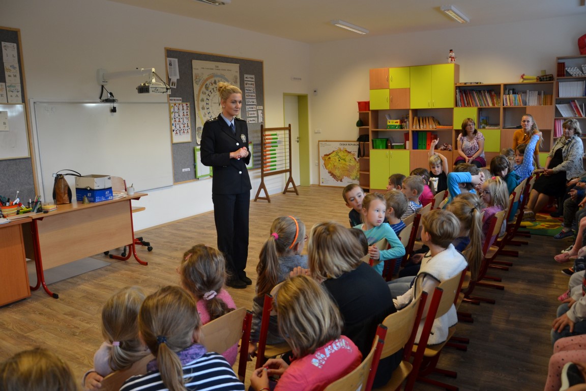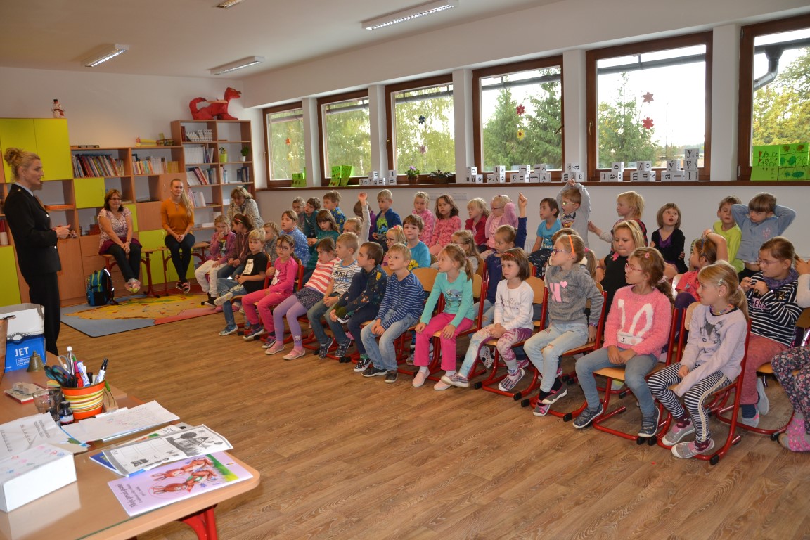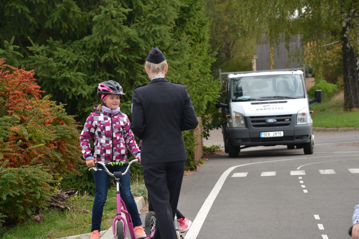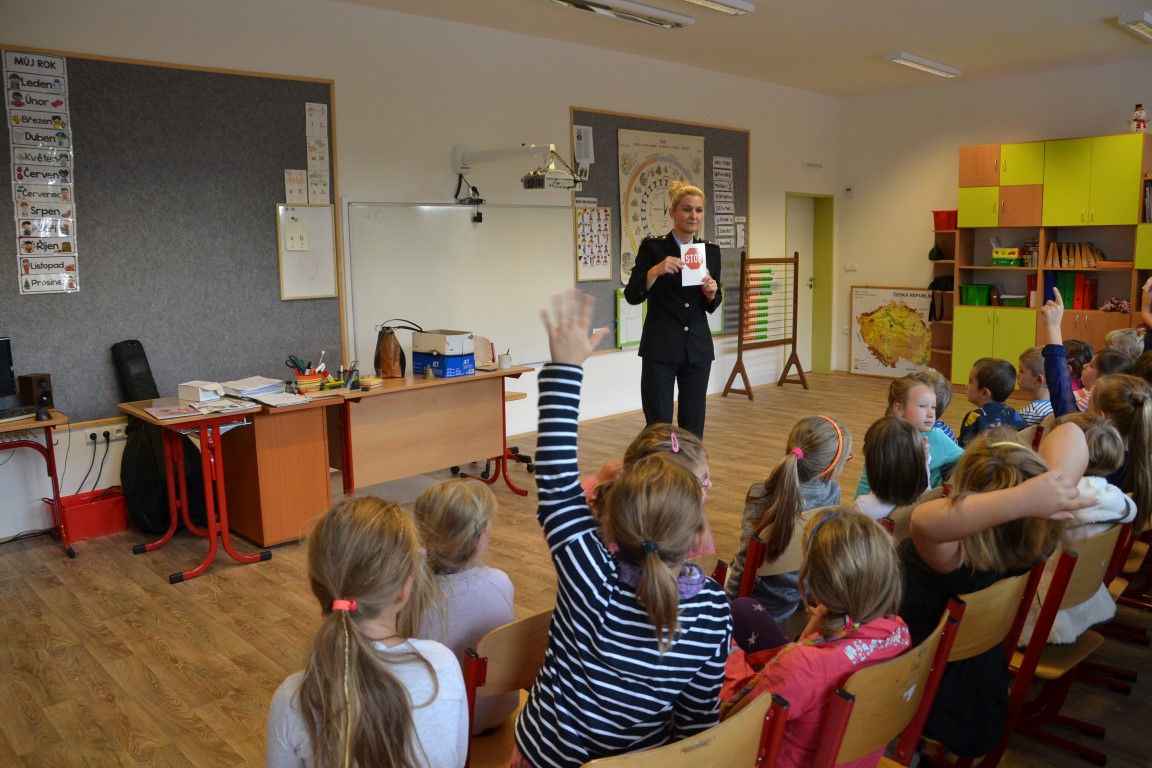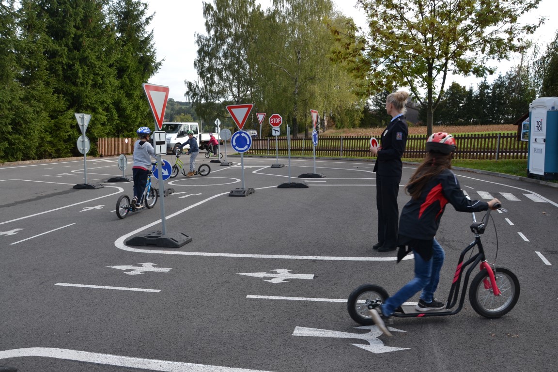 Školáky navštívila tisková mluvčí Policie ČR. Nejprve si připomněli, jak se bezpečně chovat na silnicích, na závěr ukázali na dopravním hřišti u školy, jak zvládají bezpečnou jízdu v praxi.