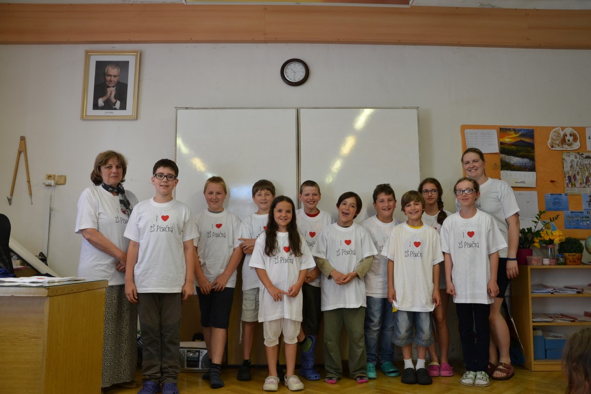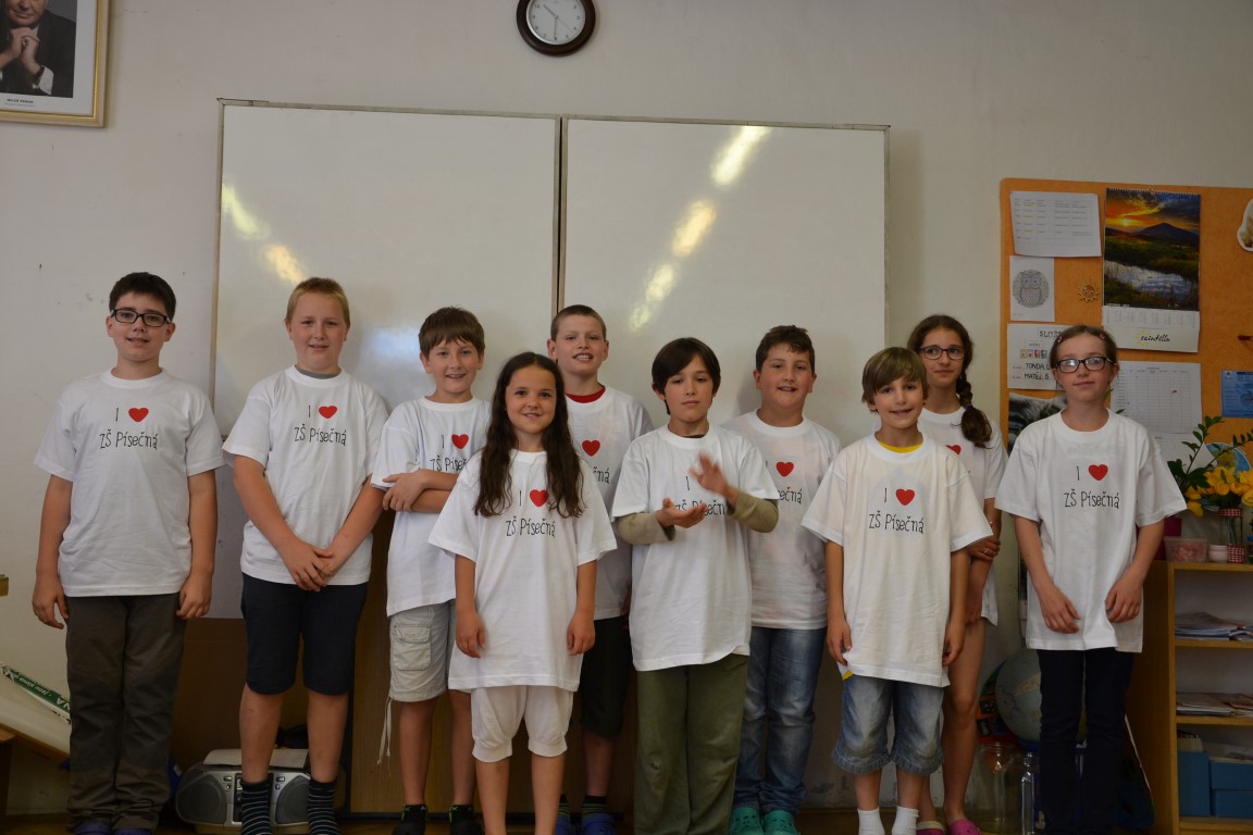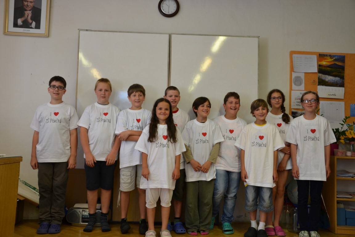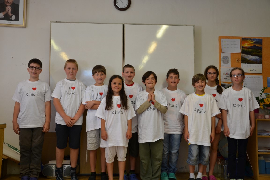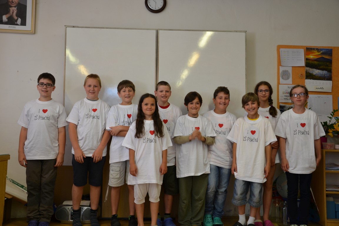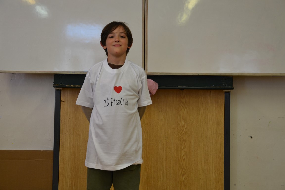 23. června jsme se loučili s našimi páťáky, na památku dostali trička, která navrhl Tom Jindra. Zároveň jsme přivítali budoucí prvňáčky, kteří dostali školní trička.
