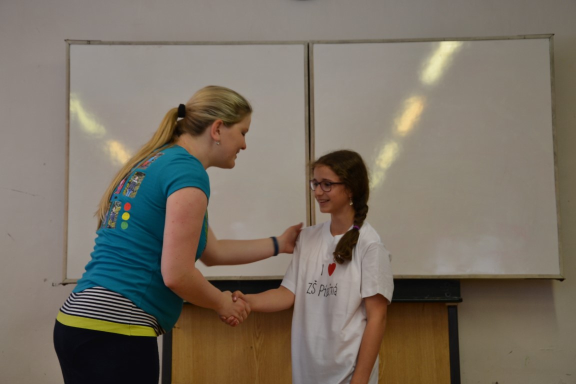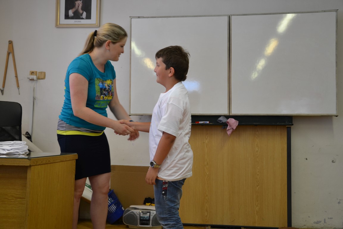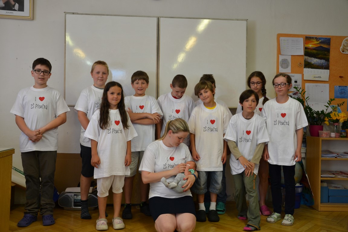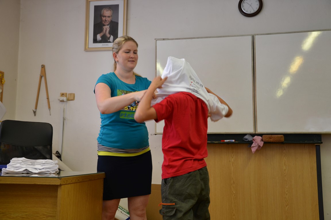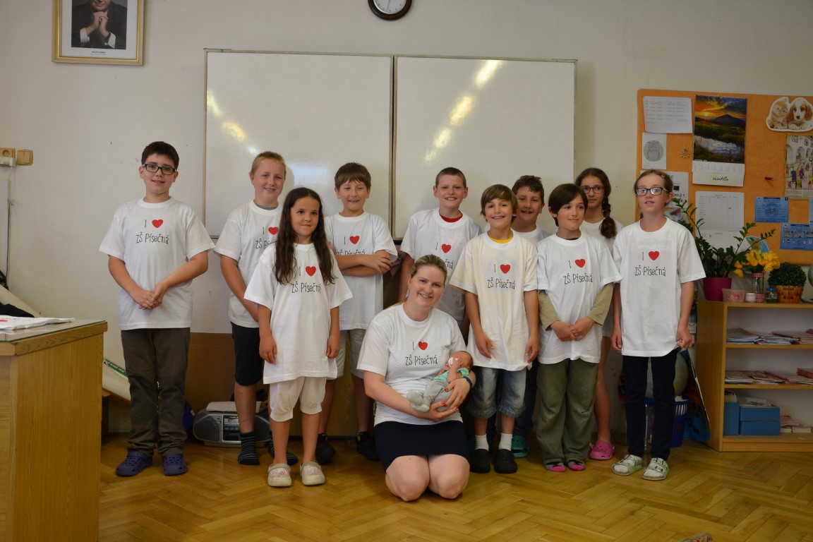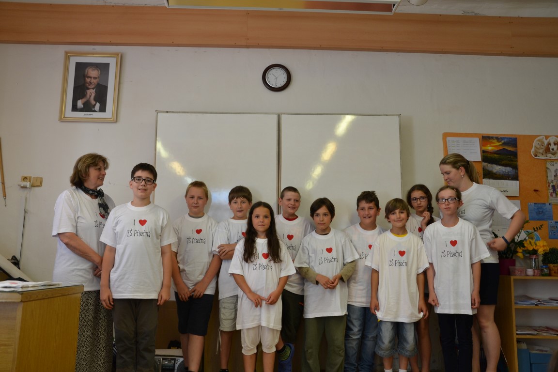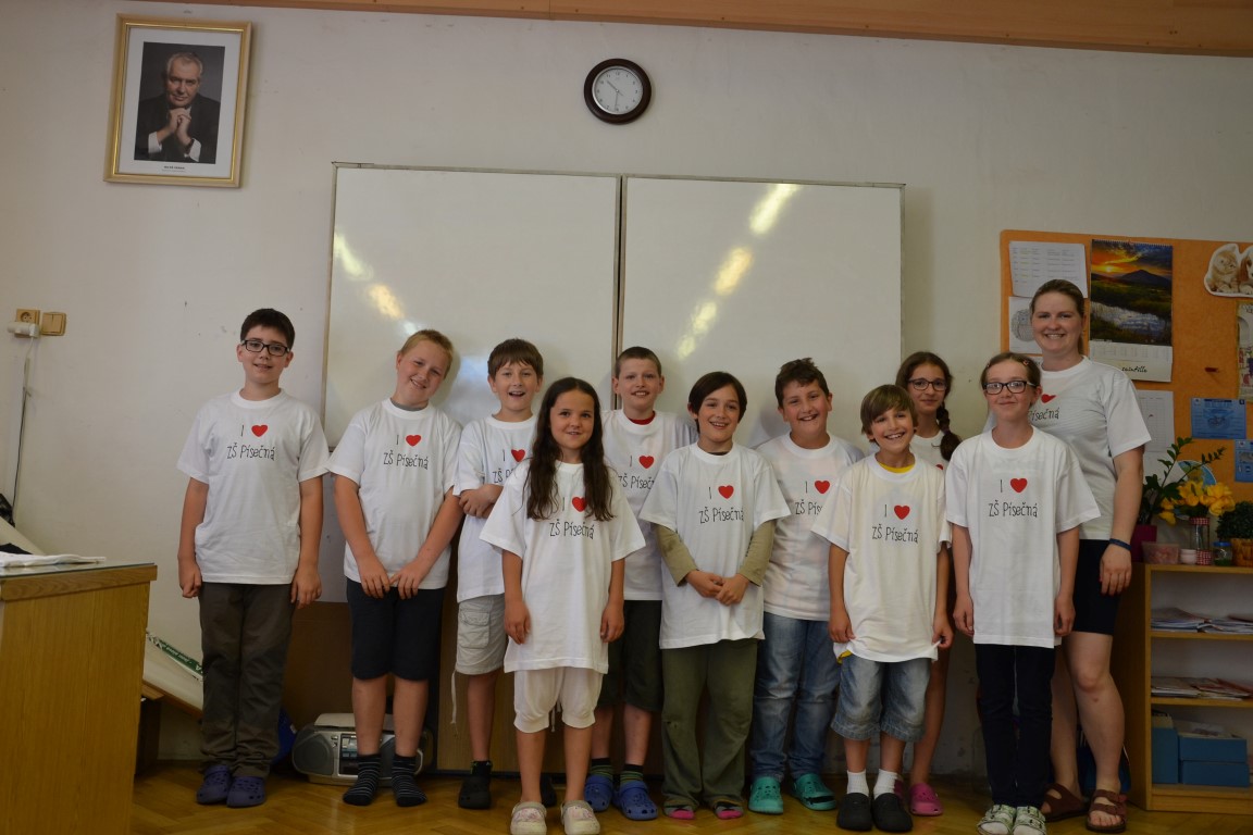 23. června jsme se loučili s našimi páťáky, na památku dostali trička, která navrhl Tom Jindra. Zároveň jsme přivítali budoucí prvňáčky, kteří dostali školní trička.