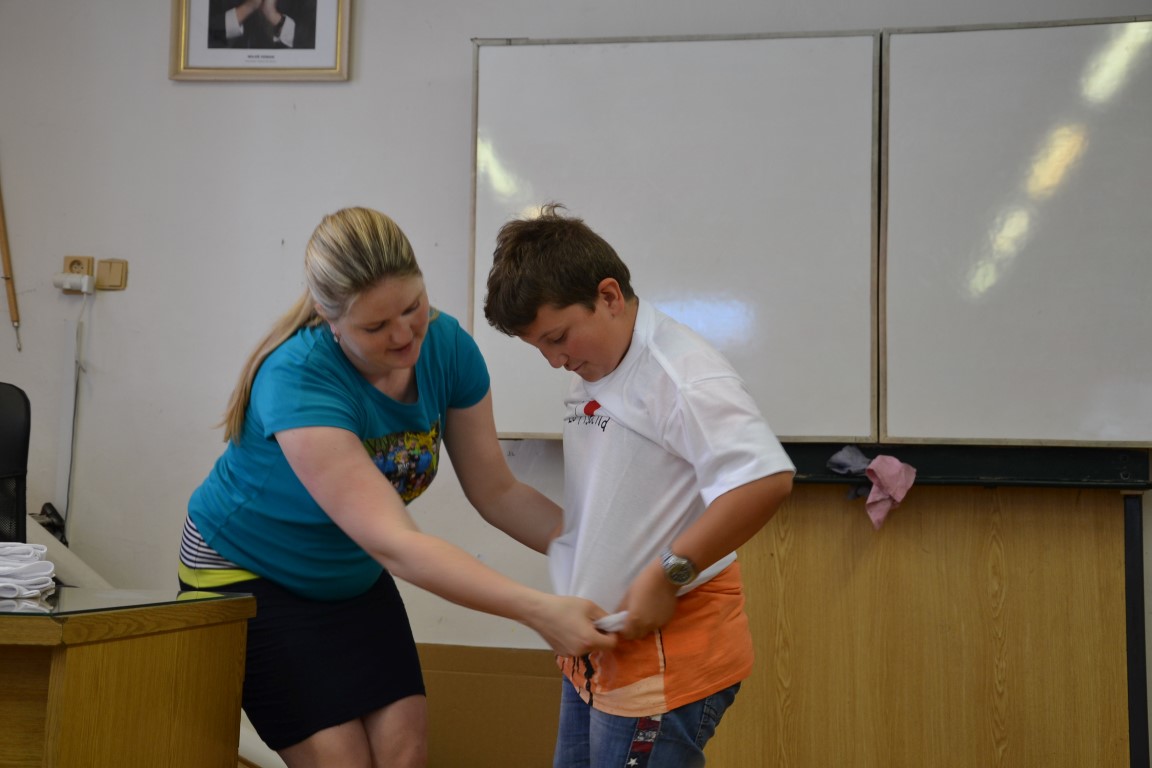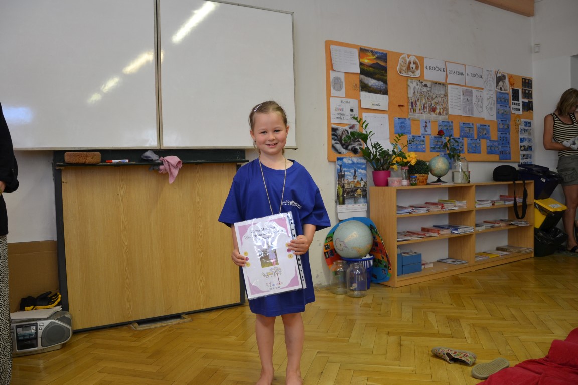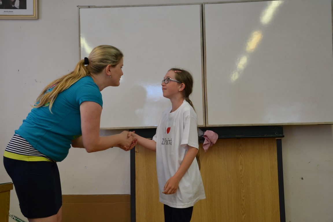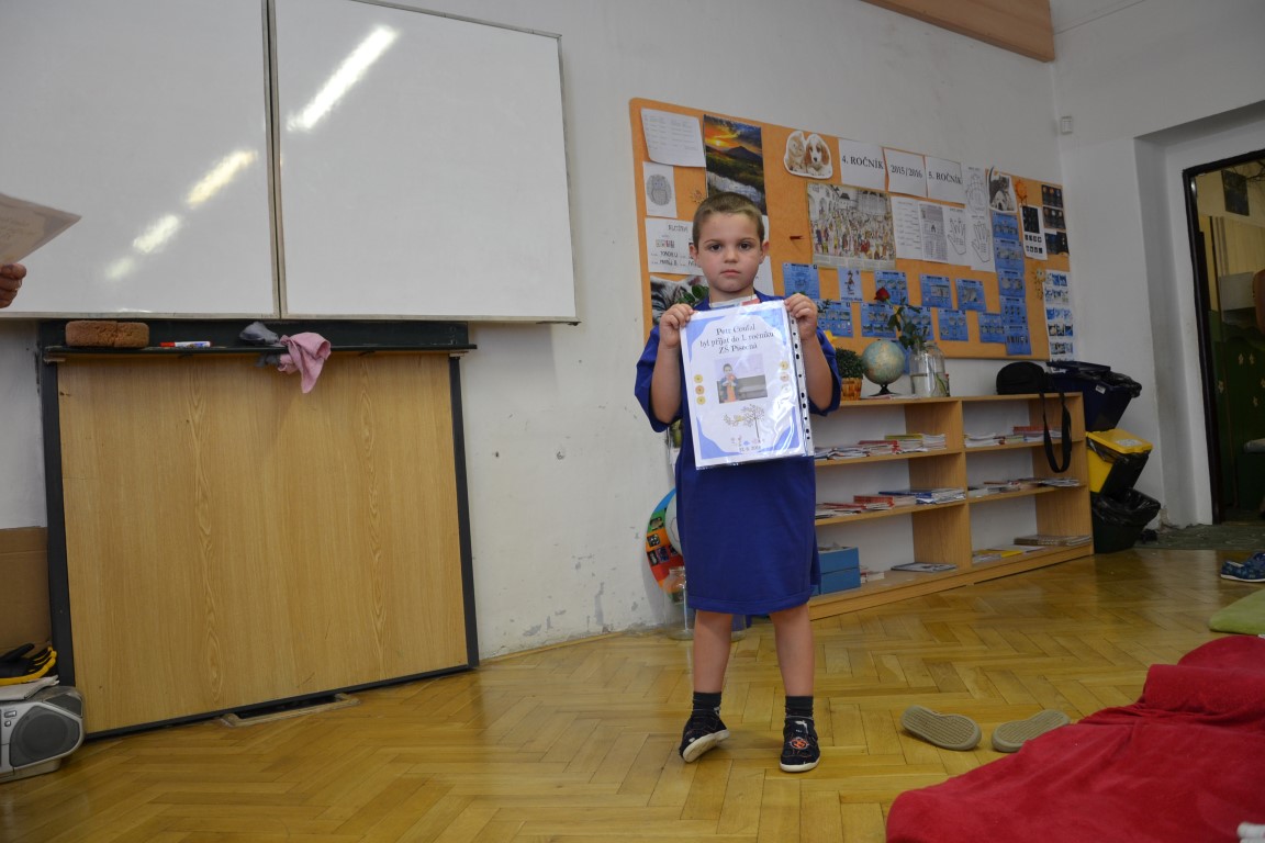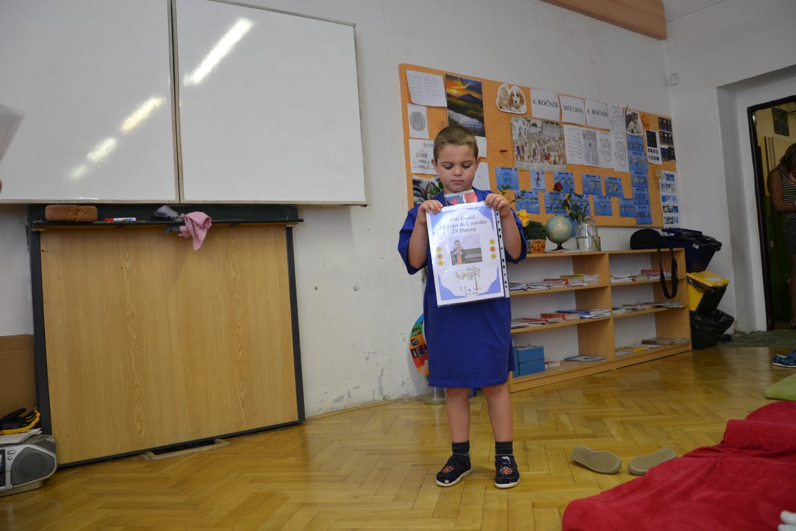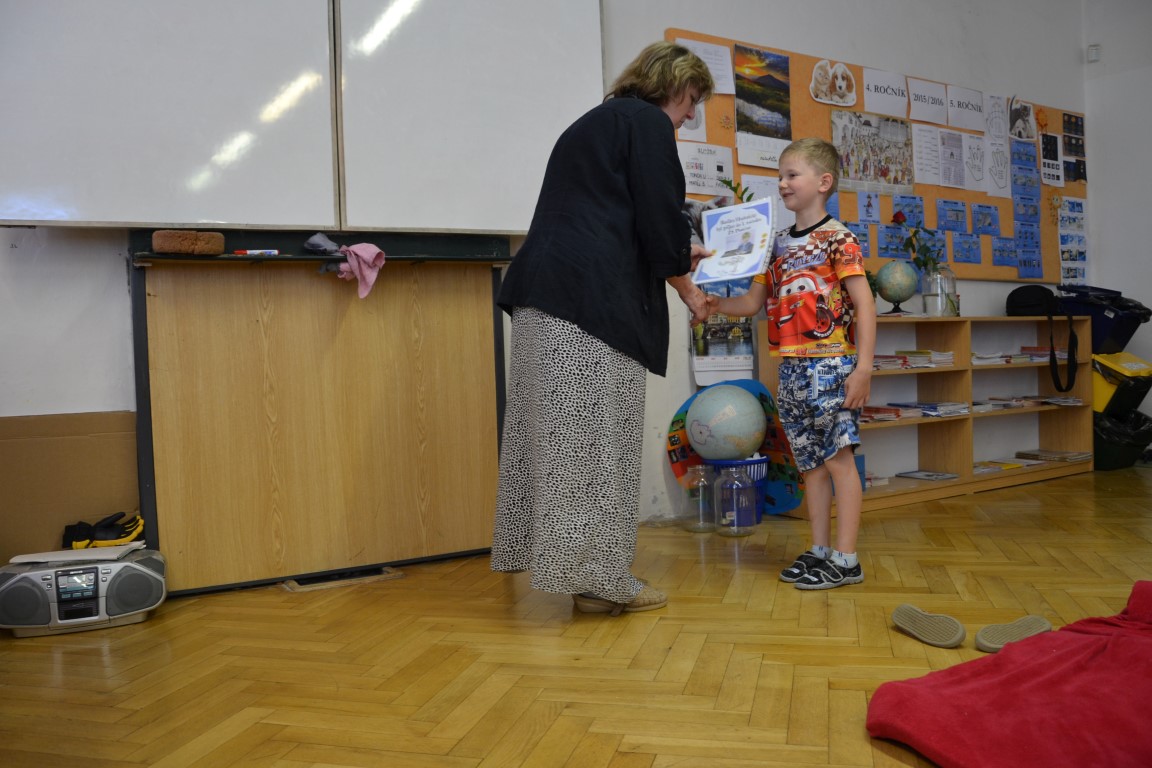 23. června jsme se loučili s našimi páťáky, na památku dostali trička, která navrhl Tom Jindra. Zároveň jsme přivítali budoucí prvňáčky, kteří dostali školní trička.