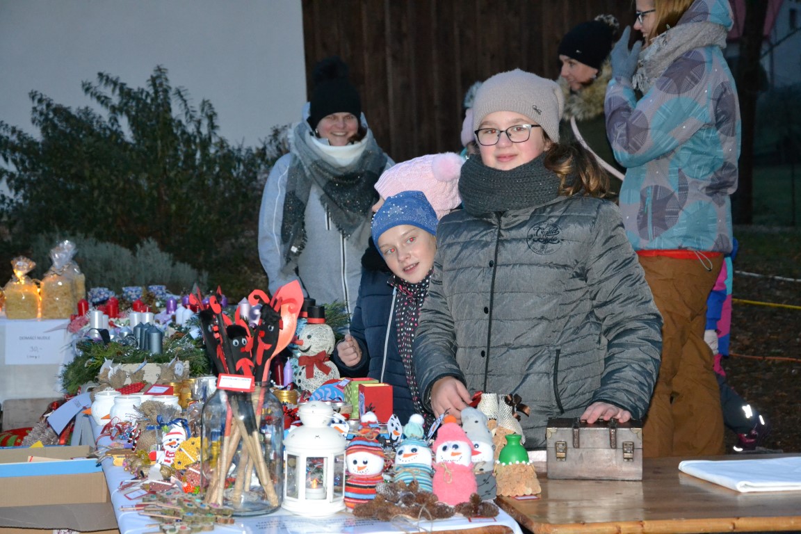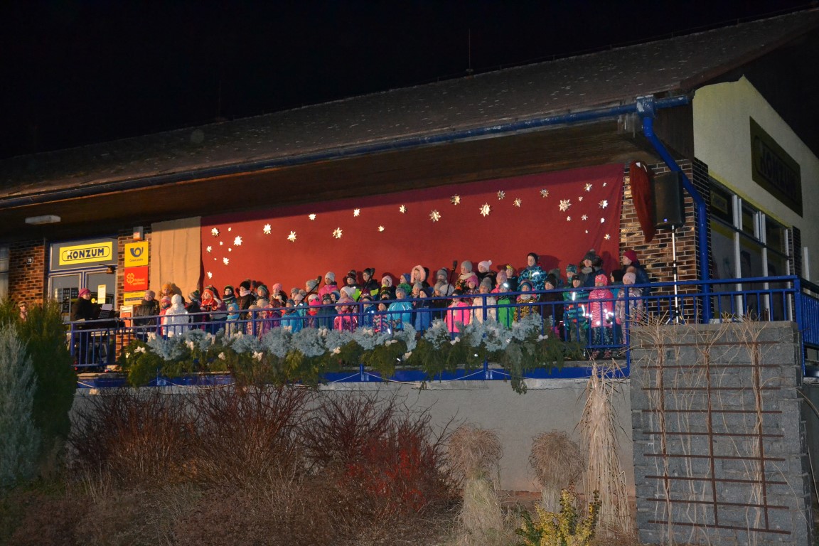 Fotky z vystoupení dětí u rozsvěcení vánočního stromu a z jarmarku.